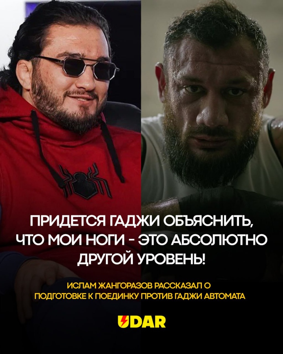 👊У Гаджи Автомата могут возникнуть серьезные проблемы! Ислам Жангоразов объяснил, что его работа на ногах находится на другом уровне: Джанго настроен нанести серьезный урон Гаджи Наврузову! 16-17 августа в квартале Архангел Михаил в Екатеринбурге пройдет международный турнир по кикбоксингу от лиги RCC: Гаджи Автомат и Ислам Джанго проведут три раунда в маленьких перчатках. 📺Прямая трансляция шоу на канале UDAR - www.taplink.cc/udar.tv В этом посте есть большое видео, которое не загрузилось в Дзен. Откройте оригинал поста в телеграме, чтобы его посмотреть