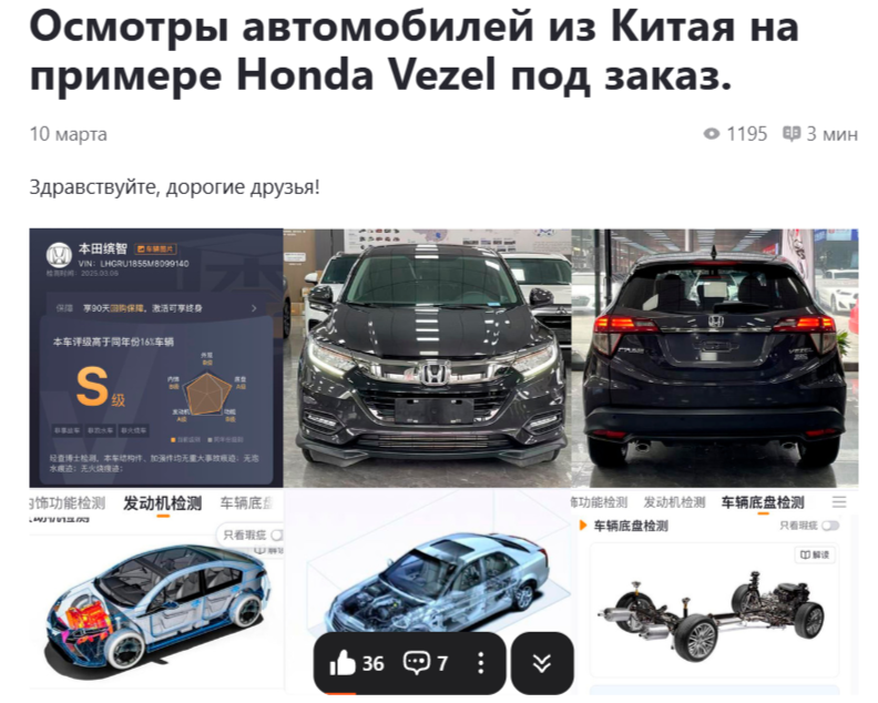 Здравствуйте, дорогие друзья. Недавно своему Заказчику из Московской области привозили Honda Vezel под заказ из Китая. Про этот автомобиль у нас выходила статья: «Осмотры автомобилей из Китая на примере Honda Vezel под заказ.» (кликнете на этот абзац и перейдёте к прочтению статьи). Далее близко к тексту изложу рассказ Заказчика об прошивке автомобиля и самостоятельной установке круиз-контроля на Vezel. В первой части будет про прошивку, во второй части про установку. По ходу изложения будут ссылки на необходимые ресурсы. Часть I Добрый день, хочу поделиться информацией по установке круиз контроля на Honda Vezel, в выходные делал прошивку автомобиля в ReflashTeam, заодно поинтересовался можно ли установить круиз контроль сюда, по умолчанию мозги зашиты уже, люди меняют руль на руль с кнопками круиза, главное чтобы шлейф между кнопками был с левой стороны и работает, но тут важна ещё панель приборов она отдает сигнал мозгами здесь он не нашел информации, и в приборке нет ламп круиза,