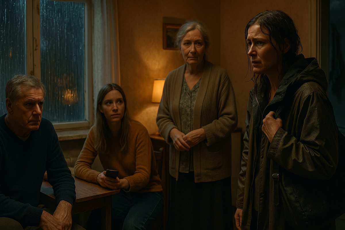 Дверь скрипнула, будто тоже отказывалась открываться на ночь глядя. За порогом стояла женщина — лет за сорок, не больше, но усталость в её глазах тянула на все шестьдесят. Волосы мокрым шлейфом прилипли к вискам, куртка потемнела от воды, она замерла, словно не решаясь переступить порог, и только губы дрогнули, когда на неё уставились трое: отец, мать вымученно-удивлённая, дочь с пугающей новизной в глазах.