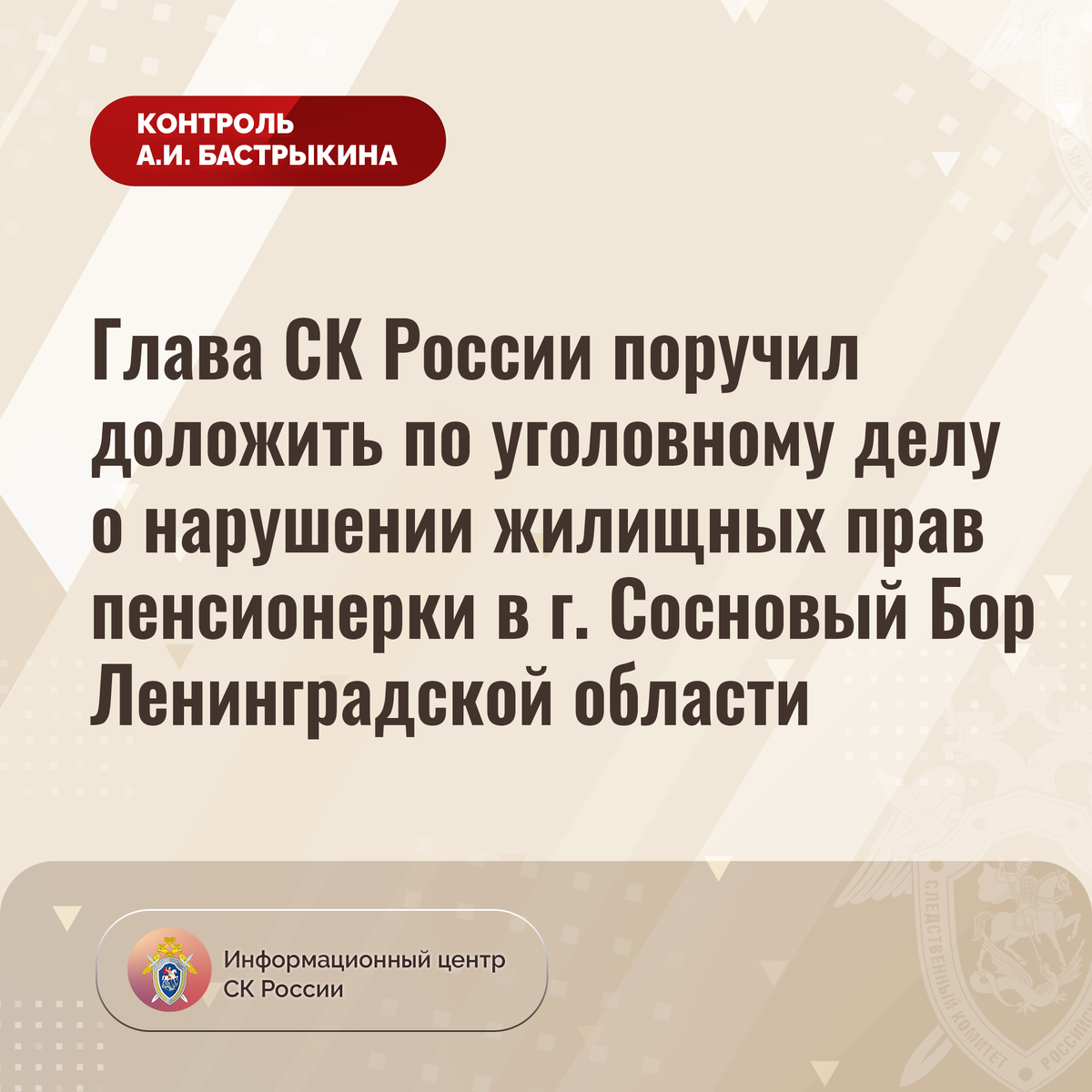 Глава СК России поручил доложить по уголовному делу о нарушении жилищных прав пенсионерки в г. Сосновый Бор Ленинградской области