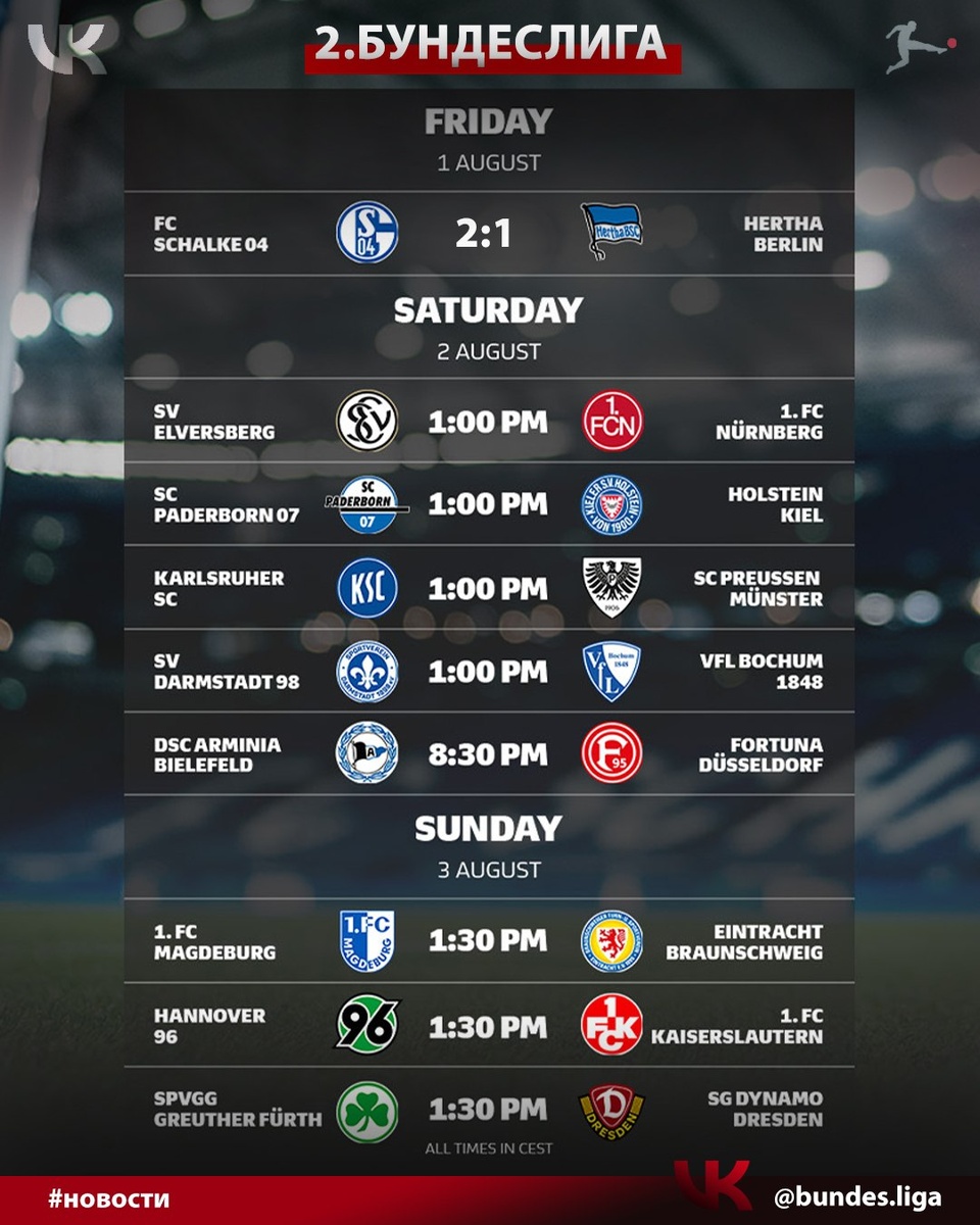 🔥 #2Бундеслига полноценно стартует в эти выходные! 2 и 3 августа состоятся все матчи первого, стартового тура нового сезона во Второй