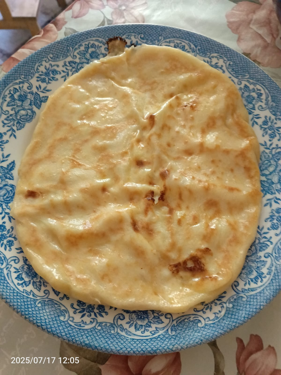 Разминаем тесто в лепешку, в середину кладем начинку и защипываем к верху. Раскатываем скалкой или рук