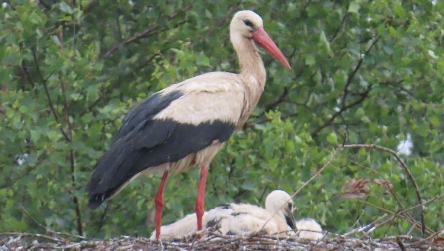 В Бежецком округе в семействе белых аистов подрастает потомство