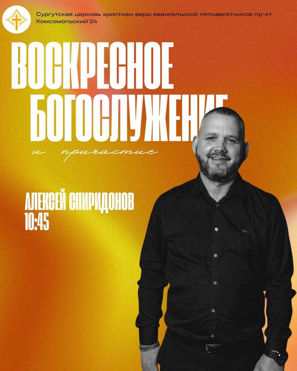 Добро пожаловать на воскресное Богослужение и Причастие! 📅 03.08.2025 🟡10:45 📍Сургут, пр-т Комсомольский 24 📎 Пресвитер Алексей Спиридонов ✝️присоединяйтесь к нам онлайн RUTUBE https://rutube.ru/channel/41683559/ Если вы планируете смотреть онлайн трансляцию не забудьте приготовить хлеб и виноградный сок, чтобы в единстве с церковью принять Причастие. ВК 🔗 https://vk.com/surgutcerkov Не забудьте подписаться ✍️
