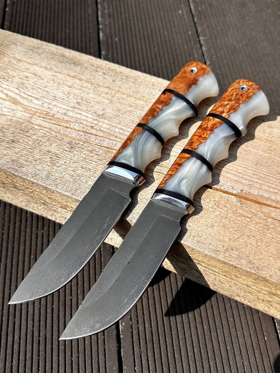 🔪 Охотничий нож мечты для ценителей надёжности! Охота, рыбалка, поход — когда нужен по-настоящему надёжный и резучий нож, выбирайте ручную работу из кузницы Назарова В.В.! ⠀**Клинок — из инструментальной стали Х12МФ с криообработкой** *• Долго держит заточку* *• Агрессивный рез — как у бритвы* *• Твердость: 61-62 HRC* ⠀**Рукоять — гибрид стабилизированной карельской берёзы (янтарь) и белого акрила** *• Анатомическая форма — идеально ложится в руку* *• Не боится влаги и времени* ⠀В комплекте: ножны из натуральной кожи. 💼 По желанию — формованные ножны +8 000 руб. ⠀ Цена за нож: ~9 640 руб.~ 8 194 руб. по акции! ⠀ Пиши @Nazarklinokbot или WhatsApp/Viber +79101343831 — ответим на все вопросы и поможем оформить заказ! #ручнаяработа #охотничийнож #ножизх12мф #кузницаНазарова #подарокмужчине #опытмастера #надежныйнож #купитьнож
