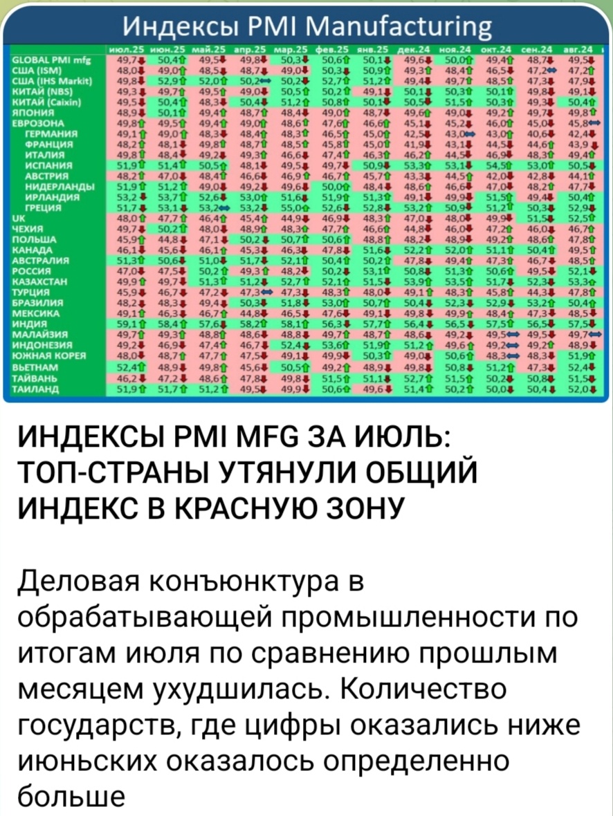 Индекс обрабатывающей промышленности по странам.