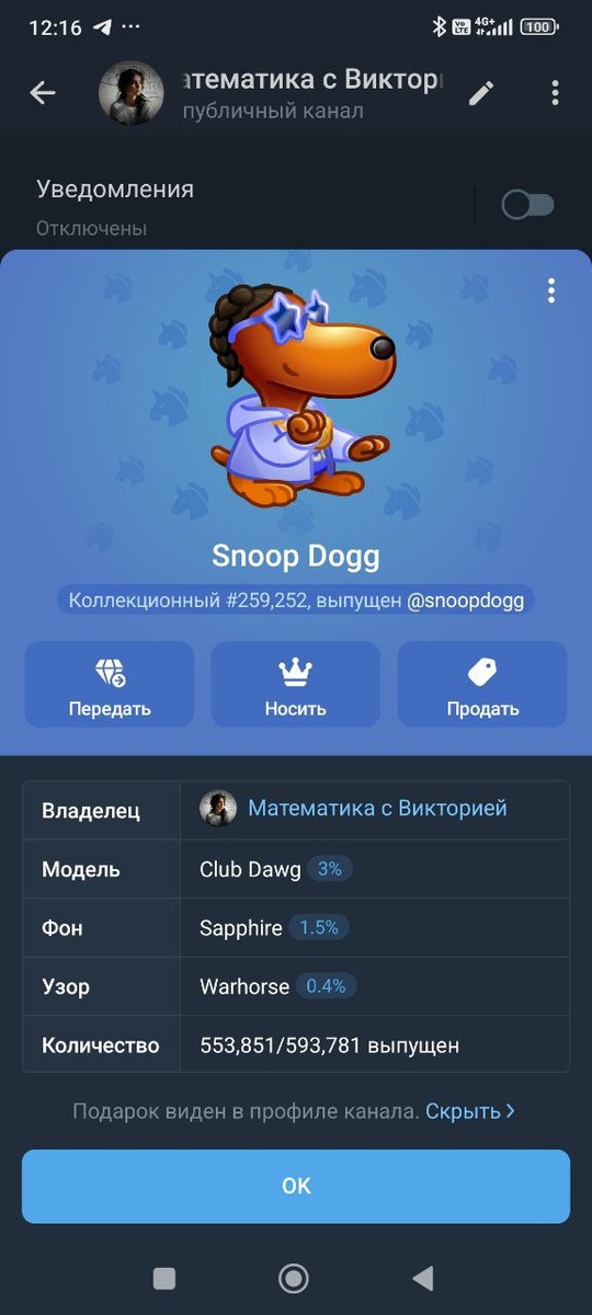 Ничëсе 🙂 Мой тгк богаче меня уже стал 🤣 Я кстати не понимаю, откуда эти подарки берутся коллекционные. Их люди передают другим как-то или как это работает? P. S: спасибо человеку, который подарил этот подарок💝 Неожиданно, правда)