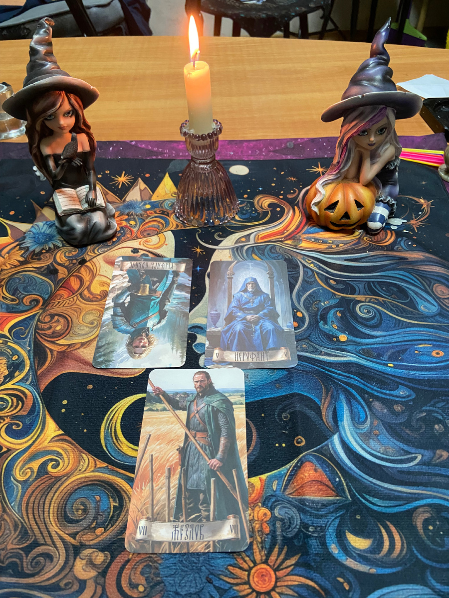 Проснулась сегодня позже обычного — и знаете, это было даже приятно. За окном утренняя тишина, лёгкий ветерок и запах свежести после дождя. Всё как я люблю. Кофе варю только в турке — это ритуал, который нельзя нарушать. Плотный, ароматный, с небольшой пенкой. Пью его на подоконнике, рядом мурчит Малыш — у него тоже свои утренние привычки. Если спит в коридоре — значит, ночью не гулял. Сегодня, видимо, без охоты. Карты дня вытянула ближе к обеду — позже обычного. Выпали сразу три. Жрец. За ним, словно прячась, Паж Кубков — перевёрнутый. И сверху, как вишенка на торте, лёгла Семёрка Жезлов. Красивый, немного упрямый расклад. День будет с характером 📍Карта дня – суббота и воскресенья Выпали сразу три карты: 🔸 Жрец – отвечает за стабильность, традиции, опыт. День, когда важны спокойствие, внутренний порядок и уважение к себе. 🔸 Паж Кубков (перевёрнутый) – может говорить о лёгкой эмоциональной неустойчивости. Внутренний ребёнок может обидеться или капризничать. Кто-то рядом тоже може