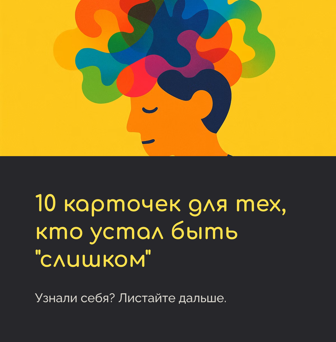 "Когда мир слишком громкий: история чувствительных людей" Представьте, что вы — редкий цветок, раскрывающийся на рассвете. Ваши лепестки настолько тонки, что чувствуют малейшее дуновение ветра. Капля росы для вас — целый океан, солнечный луч — яркое пламя. Так живут люди с высокой чувствительностью. Их мир — это: шёпот эмоций, который другие не слышат невидимые нити, связывающие всё вокруг постоянный диалог с собственной душой Но в этом есть и тень... Глава 1. Почему так больно? Жила-была девочка (или мальчик — подставьте себя). С самого детства она замечала то, что не видели другие: как мама вздыхала, скрывая усталость как учительница меняла голос, когда злилась как друзья переглядывались, когда она говорила Сначала это казалось даром. Потом — проклятием. Потому что: Мир не рассчитан на такую тонкость Шумные офисы Резкие слова Бесконечный поток информации Как птица с перебитым крылом, вы пытаетесь лететь в ураган. Тревожность — верный, но утомительный спутник Она шепчет: "А вдруг..."
