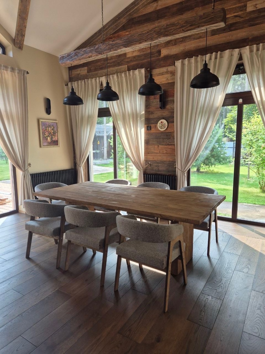 Конструкция П-образного стола позволит очень комфортно разместить за ним до 8 человек (а можно и больше - при необходимости к столу можно поставить длинную скамью вместо стульев) Стол доставляем в разборном виде, схема сборки максимально проста. Выполним на заказ с выбором размера и цвета.