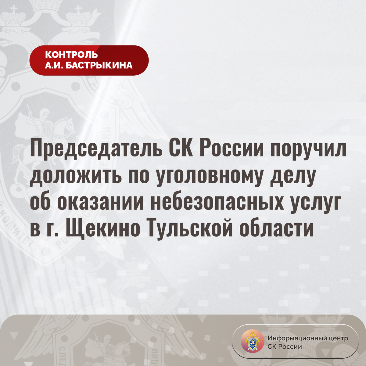 Председатель СК России поручил доложить по уголовному делу об оказании небезопасных услуг в г. Щекино Тульской области