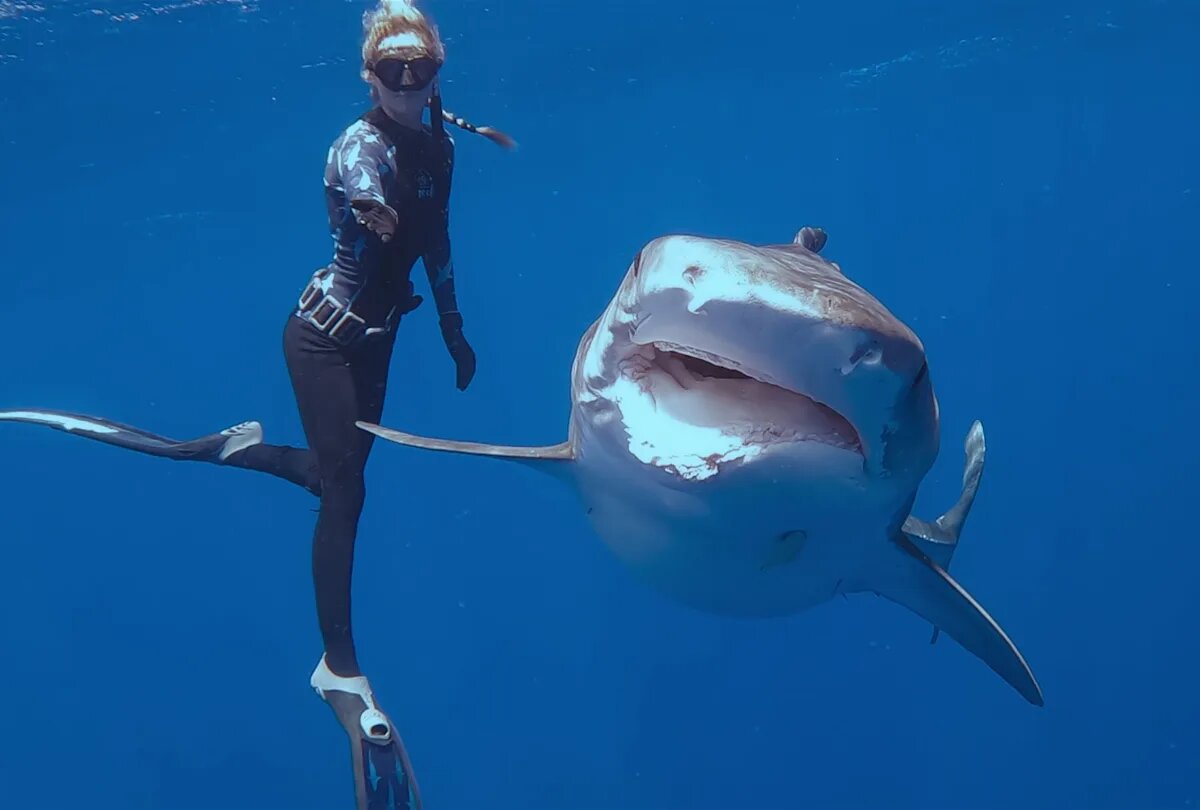 Жанр: документальный Оценка по ШЦ: 6 из 10 Синопсис Морская защитница и активистка социальных сетей Оушен Рамзи бесстрашно плавает с акулами в этом документальном фильме о своей миссии по их защите Общие впечатления Очередной документальный фильм от Netflix, за что ему большое спасибо. В этот раз нам рассказывают об Оушен Рэмси — морском биологе, профессиональном фридайвере и защитнице акул, для которой океан — это настоящий дом. В фильме Оушен рассказывает о себе, о том, как пришла к этому делу и как эволюционировали её взгляды. И надо сказать, что это по-настоящему храбрая женщина, которая не только вблизи взаимодействует с самыми крупными и часто демонизируемыми видами, такими как большая белая или тигровая акула, но и постоянно борется за их защиту, сталкиваясь с критикой и насмешками. Нам показывают её знаменитую встречу с огромной самкой белой акулы по имени "Дип Блю" (Deep Blue), которая принесла ей мировую известность и сделала её миссию заметной для миллионов. Можно сказать, ч