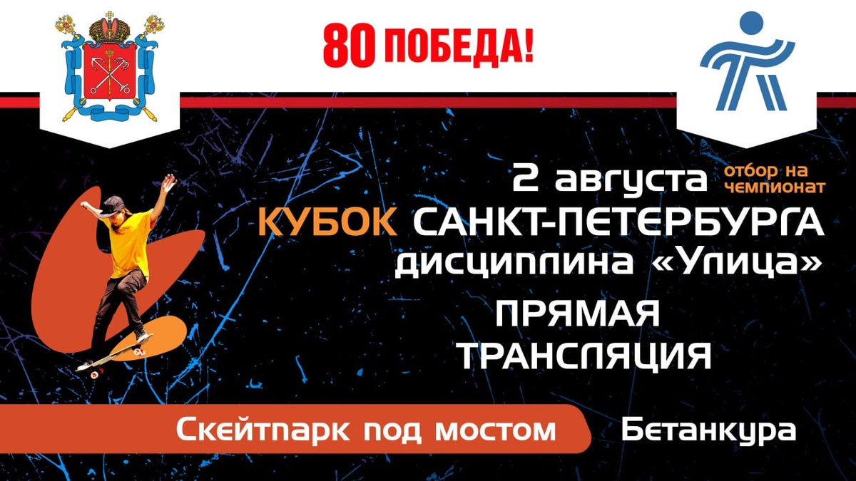 🔴Прямая трансляция Кубка Санкт-Петербурга по скейтбордингу в дисциплине «улица»! 🔥 Сильнейшие спортсмены пройдут отбор на чемпионат нашего города, который пройдет уже 3 августа. Станьте частью зрелищного мероприятия, невероятных трюков и завораживающего соперничества на скейтпарке под мостом Бетанкура. 👀 СМОТРЕТЬ ТРАНСЛЯЦИЮ 🙌Будь ВСпорте!