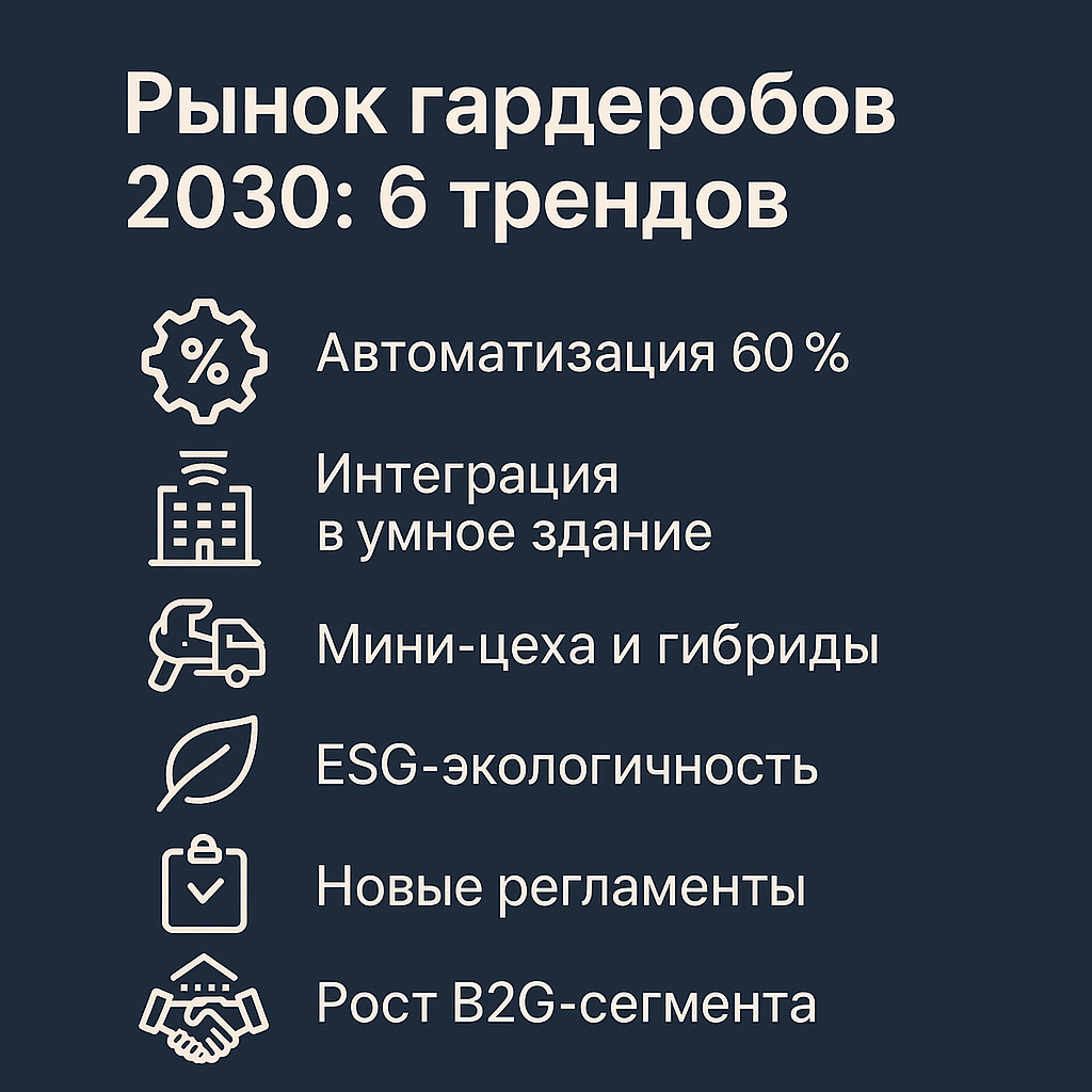 Автоматизация резко меняет даже такие «консервативные» зоны, как гардеробы. Ниже — шесть трендов, которые, по нашим оценкам, определят рынок до 2030 года.