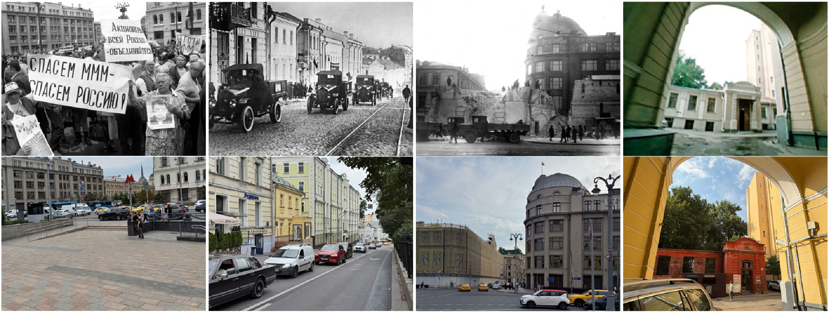 Здравствуйте, друзья! Снова гуляем по Москве с помощью сравнительной фотографии. Разные места и годы... Сразу подписывайтесь, чтобы не пропустить новое и... Лубянский проезд в сторону площади Ногина (Славянской). Подпись к фото 1924 года гласит: «Первые десять автомобилей АМО-Ф-15, покрашенные в красный цвет, символизирующий цвет знамени революционного пролетариата, они утром 7 ноября 1924 года прошли по Красной площади во главе колонны демонстрантов». На площади Ногина (с 1992 года — Славянская площадь). Здесь же. На фотографии 22.01.1958 года запечатлен митинг, посвящённый открытию областной доски почёта передовых предприятий промышленности, транспорта и строек Московской области. Улица Старая Площадь — дорога вдоль Китайгородской стены от площади Ильинских ворот до Варварской площади... ...и место, где стояла Многогранная башня, снесенная в 1934 году. Ильинские ворота. Башня с проездными воротами к улице Ильинка и прилегающий участок Китайгородской стены были снесены в 1934 году.