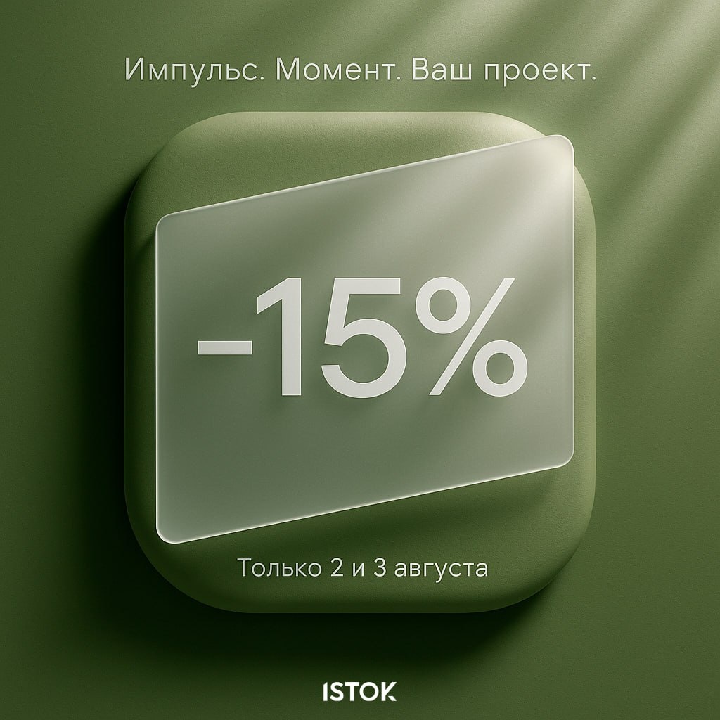 Импульс. Момент. Ваш проект. ❤️ ✨ Все великие свершения начинаются с одного шага. Ваш — начинается в эти выходные. ISTOK дарит вам идеальный импульс для воплощения мечты. ⚡️ Только два дня, 2 и 3 августа, мы создаем особое пространство возможностей. Получите дополнительную скидку 15% на абсолютно все расчеты, сделанные в эту субботу и воскресенье. 💎 Это больше, чем скидка. Это ваш знак, что пора действовать. Позвольте нам рассчитать стоимость вашего будущего шедевра, а мы сделаем его еще доступнее. Мгновение, которое определяет будущее. Не упустите его. Свяжитесь с нами, чтобы обсудить ваш будущий проект: 📞 +7 931 121 39 00 ✍️ @ISTOK_Connect