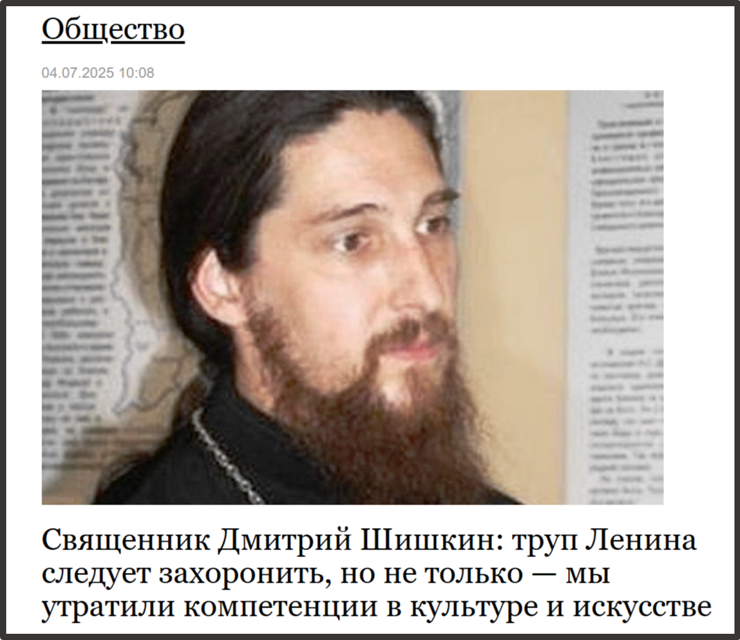 Священник Дмитрий Шишкин: "Труп Ленина следует захоронить"