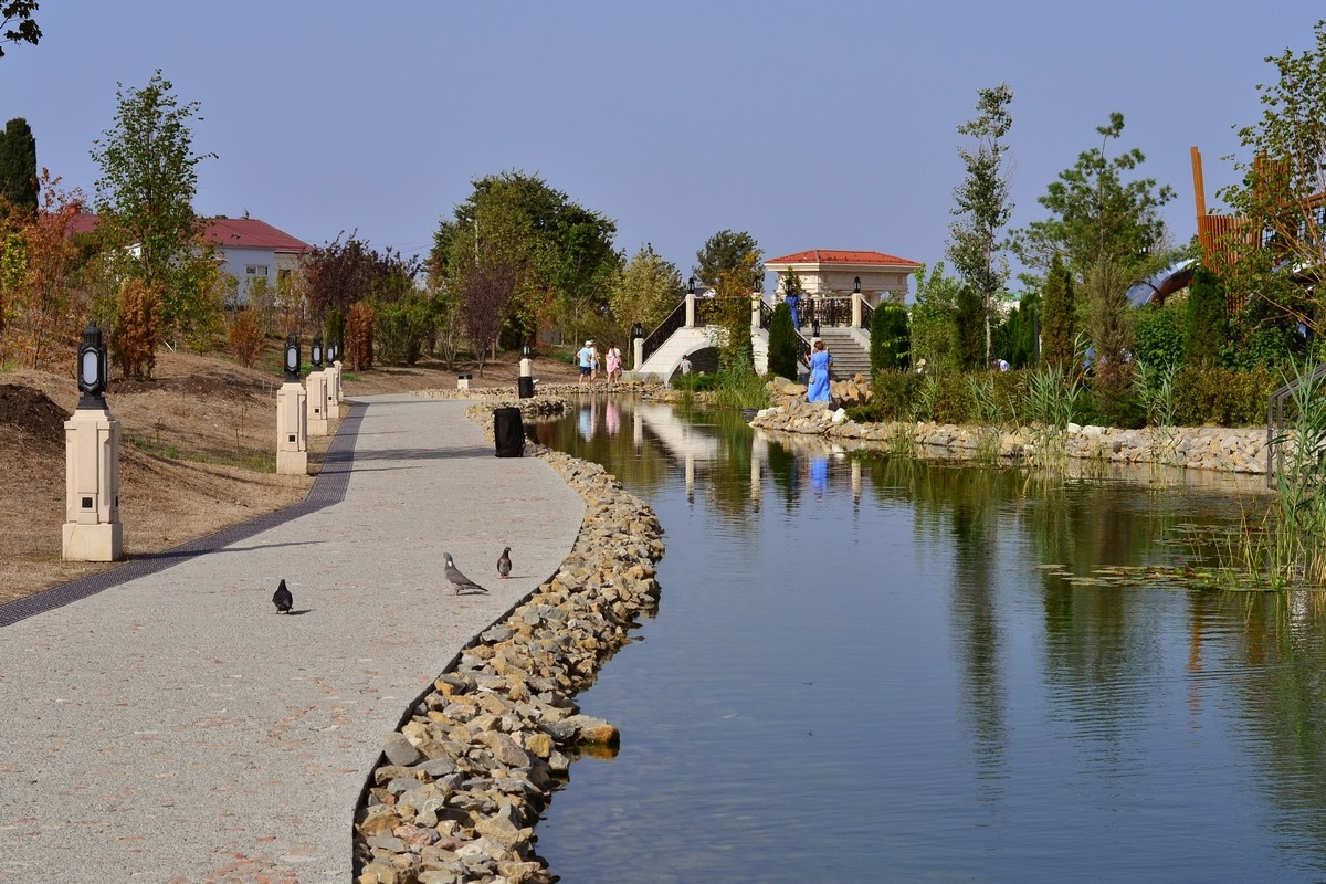 Красивая получилась река Героон, не хватает ещё озеленения, но всё со временем наладится. Недавно на реке появилась живность, и нет это не голуби на предыдущей фотографии, голуби везде сами идут в гости, где есть люди. Живность Героона это уточки и рыбки. Для уточек сделан на реке домик, такой же домик можно увидеть на Грушевом озере на окраине Симферополя, статья об этом интересном месте есть у меня на канале. 29 и 30 июля в Новом Херсонесе при поддержке Президентского фонда культурных инициатив прошёл фестиваль "Дни древней Греции", но на самом деле показали средневековую Византию. На реке Героон устроили модный показ три богини, именно так по легенде - богини, наверно, Нового Херсонеса. :) Светленькая сразу резво пошла на вёслах, прям настоящая мастер спорта по гребле на байдарках, синей было тяжело, но она адаптировалась, а вот с красненькой было заметно, что хуже остальных ориентируется, но все девчонки молодцы, справились. Вообще, очень интересная идея. Остальные активности фести