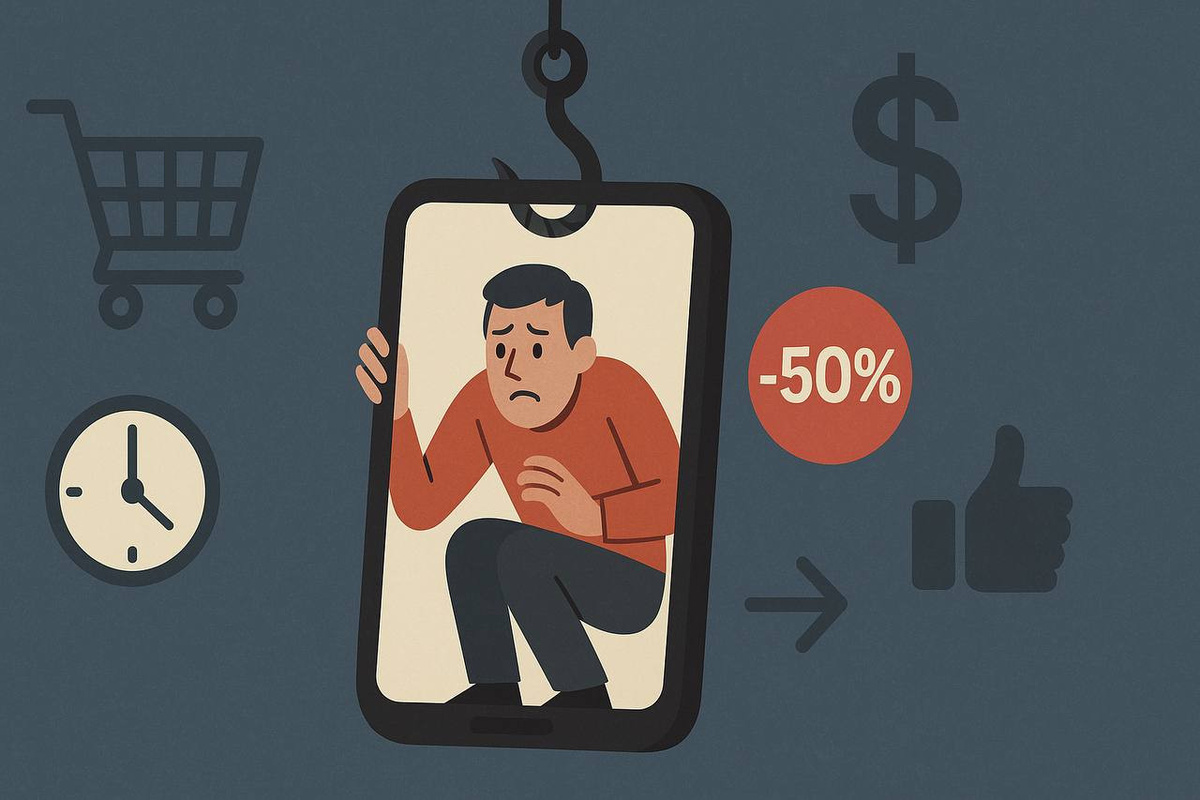 Психологические ловушки онлайн-сервисов: вы играете по их правилам Компании становятся всё изощрённее в том, как они заставляют нас тратить больше. Они используют так называемые «тёмные паттерны» — легальные, но этически сомнительные манипуляции, встроенные в интерфейсы и алгоритмы. Вроде ничего незаконного, но по сути — вас ведут к нужному решению. Возьмём Uber. Если у вас почти разряжен телефон, они поднимают цену на поездку. Они знают: выбора у вас нет — и вы согласитесь. Или Apple: если вы слишком часто проверяете батарею — устройство «понимает», что вы тревожитесь, и начинает вести себя так, будто батарея деградирует быстрее. Да, есть мнение, что это делается сознательно — чтобы подстегнуть к покупке нового айфона. Amazon тоже не святой. Он следит за тем, что вы ищете, и если видит высокий интерес — может поднять цену. А если вы начинаете терять интерес — подсовывает другие триггеры: таймеры, акции, ограниченные предложения. Они не столько продают вам товар, сколько нажимают