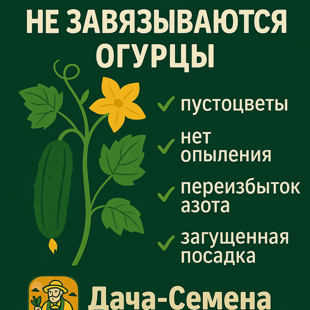 Летний сезон в разгаре, и кажется, всё делаем правильно: огурцы цветут, кусты мощные, а плодов нет или совсем мало. Почему так происходит и как вернуть урожай — разберёмся по порядку. У огурца сначала формируются мужские цветки (пустоцветы), а только потом — женские. Если куст молодой и вы видите одни пустоцветы — не переживайте, это естественный этап. Что делать: просто подождать 1–2 недели, женские цветки появятся позже. Если завязи есть, но они желтеют и опадают — скорее всего, проблема в опылении. Причины: Решение: Огурец — культура капризная. При +15 °C завязь почти не формируется. При +35 °C пыльца становится стерильной. Совет: проветривайте теплицу, притеняйте от жары и избегайте переохлаждения. Если куст пышный, зелени много, а плодов нет — возможно, перебор с азотными удобрениями (навоз, мочевина). Решение: временно прекратить азотные подкормки и дать калийно-фосфорные (зольный настой, монофосфат калия). Огурцам нужно пространство, иначе цветки не развиваются, плохо опыля