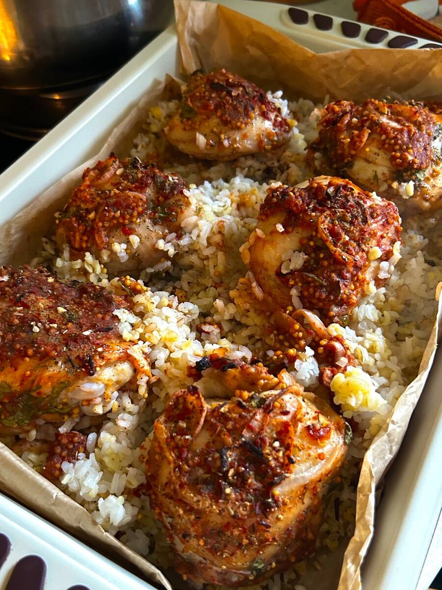 Привет! Рада, что заглянули на мой life-канал!👋🏼 Ароматное, сытное блюдо с золотистой корочкой и рассыпчатым гарниром меньше,чем за час! Для маринада: В глубокой миске соединяем: Так как я не люблю запекать сырой рис и булгур, то предварительно провариваю их наполовину: 💡 Крупы от «Увелка» обычно требуют 10–15 минут варки, так что половина — это оптимум для мягкой, но не разваренной текстуры после духовки. Приятного аппетита! Надеюсь, моя статья была полезна и интересна! До новых статей, ваша LEBEDBRA💋