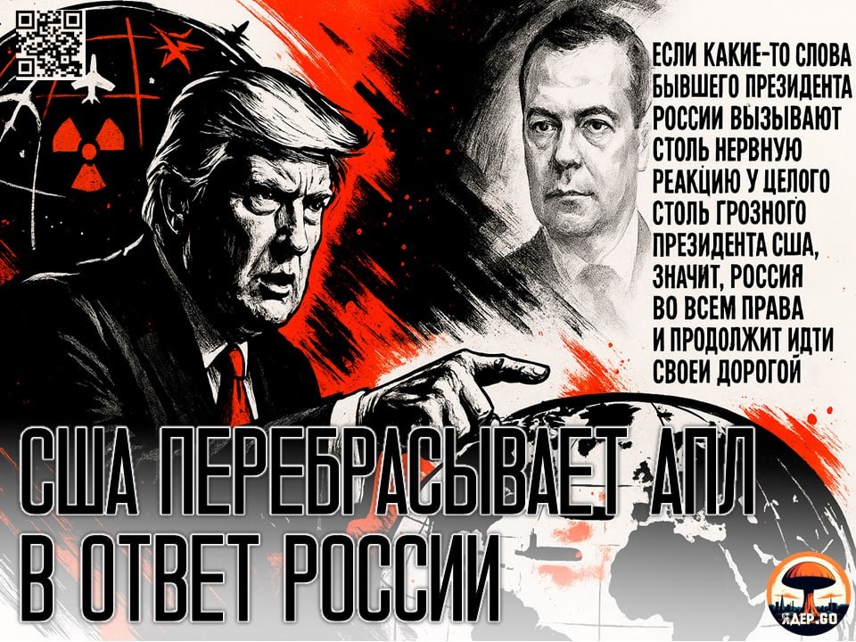 Д.Трамп перебрасывает две атомные подлодки после заявлений Д.Медведева Президент США Дональд Трамп заявил о решении перебросить две атомные подводные лодки в ответ на высказывания заместителя председателя Совета безопасности России Дмитрия Медведева. Об этом он сообщил в своём официальном аккаунте в Truth Social. «В связи с провокационными заявлениями заместителя председателя Совбеза РФ я распорядился разместить две АПЛ в соответствующих районах. Это — мера предосторожности на случай, если эти глупые заявления окажутся чем-то большим», — написал Трамп.