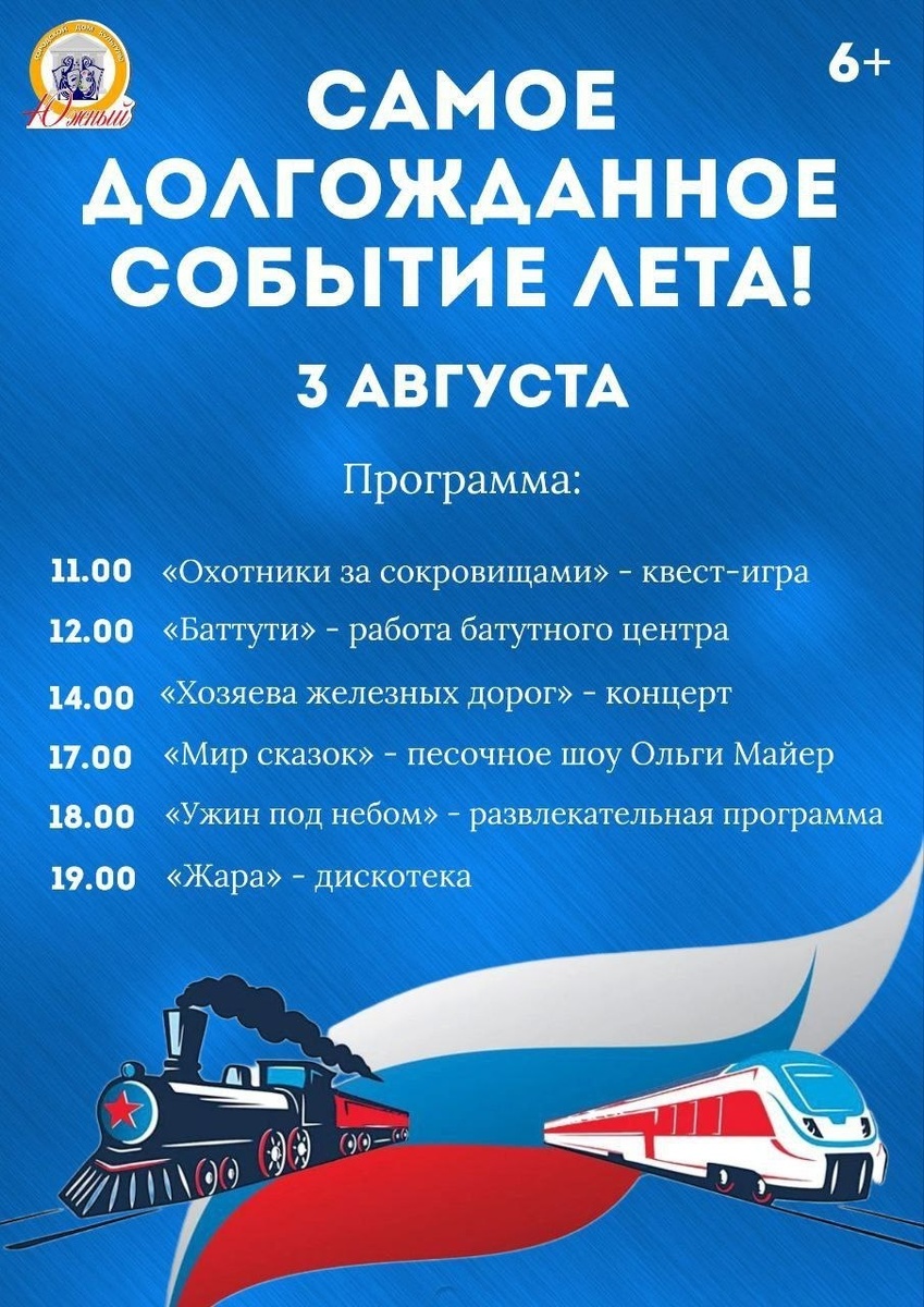 ✨ День железнодорожника 🚂❤️ Скорее смотри,что тебя ждёт!⤴️🤩 📆 03.08.2025 🏢 Городской дом культуры «Южный» 📍 г.о.Домодедово, мкрн.Барыбино, ул.Южная, стр1А ✅ Мероприятия Домодедово https://dzen.ru/id/66f10385cc4c5a16f7b5fb02 http://vk.com/domodedovo_events http://dzen.ru/domodedovo_events