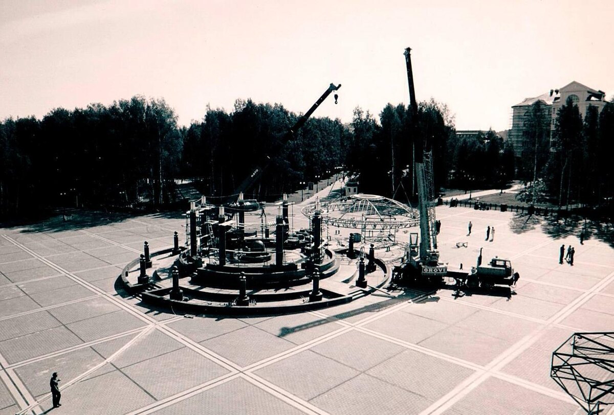 История первого городского фонтана Ханты-Мансийска 🗓️ Сегодня вся Россия отмечает 95-ю годовщину со дня образования ВДВ. 2 августа мы вспоминаем традиции наших десантников, среди которых особое место занимает одна яркая и веселая: прыжки в городские фонтаны. Обычай зародился спонтанно и быстро распространился по всей России. Символично, что главный герой нашей сегодняшней рубрики #ИсторияСтроительстваЮгры – первый городской фонтан Ханты-Мансийска «Ротонда». 💧 В 2003 году фонтан забил на центральной площади окружной столицы. Его архитектор Карен Сапричян — автор стелы «Первооткрывателям земли Югорской», парка Победы, других памятных объектов в Ханты-Мансийске и не только. «Ротонда» символизирует космос. Огромный шар в центре — Земля, которую омывают 32 водные струи. По периметру малого круга восемь колонн, поддерживающие купол — восемь планет солнечной системы. 🏗 Внешний круг из 12 колонн соответствуют месяцам года. Композицию украшает мозаичная роза ветров, ориентированная п
