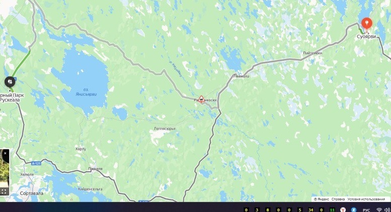 происходит от карельского, финского слова «ruskea» — «коричневый, рыжий, красный». Изначально местные жители называли «Русколкой» часть реки Тохмайоки выше водопадов за коричневый цвет воды, а затем так назвали и саму деревню, появившуюся на этой реке. Названия-то какие...певучие, тянучие. Залезли на границу с Финляндией, послушали финское радио, посмеялись. Погранцы нас предупреждали! Не надо этой дорогой ехать в Рускеала, а мы от Поросозера рванули огородами, невнятной грунтовкой...зачем? за красивым видом и экономией километров. У нас ограниченный пробег, арендованные машины не пускают вразнос)))