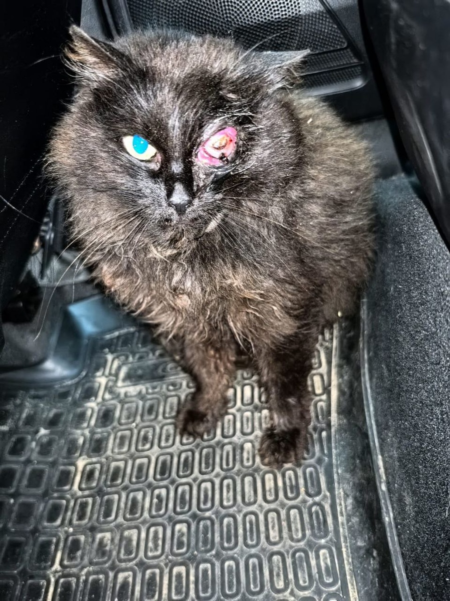 Найдена кошка (или кот) на проезжей части, с глазом беда, проблемы с челюстью