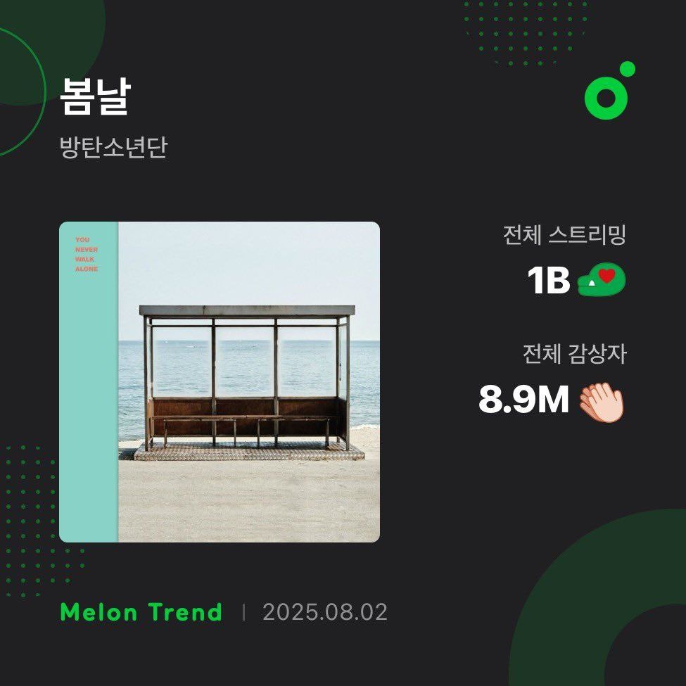 🫧 "Spring Day" превысила 8,9 миллиона уникальных слушателей на MelOn, став первой песней в истории платформы, достигшей этого результата.