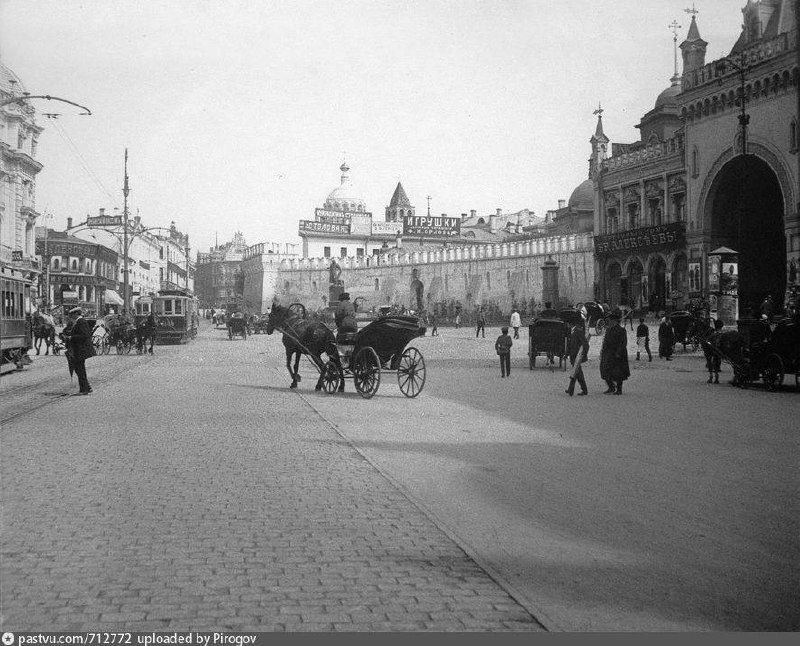 Театральный проезд на фото Губарева. Красиво проезд обрамляла стена Китай-города в Москве