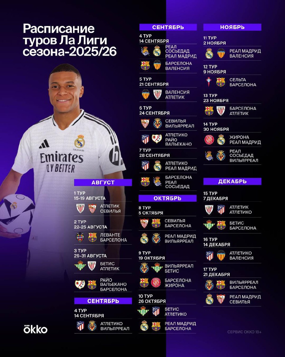 До старта Ла Лиги осталось 13 дней! Пора ознакомиться с расписанием туров