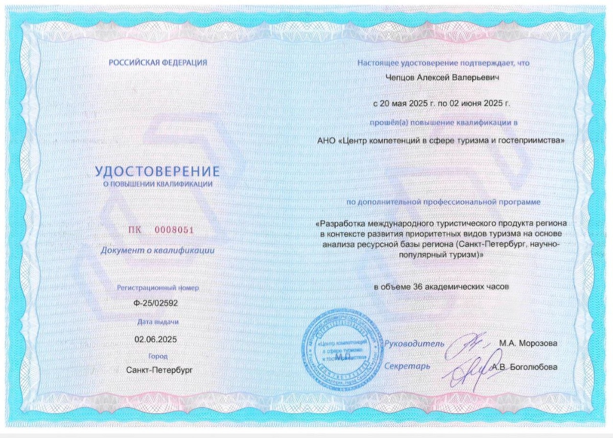 Сегодня в Центре развития туризма КО работали с заведующей кафедрой туризма и управления персоналом ВятГУ, к.э.н. Анной Шпенглер. Подвели промежуточные итоги разработки новых тур.маршрутов в районах области. За прошедшее первое полугодие прошёл пять различных курсов повышения квалификации. Сегодня пришло последнее пятое Удостоверение.