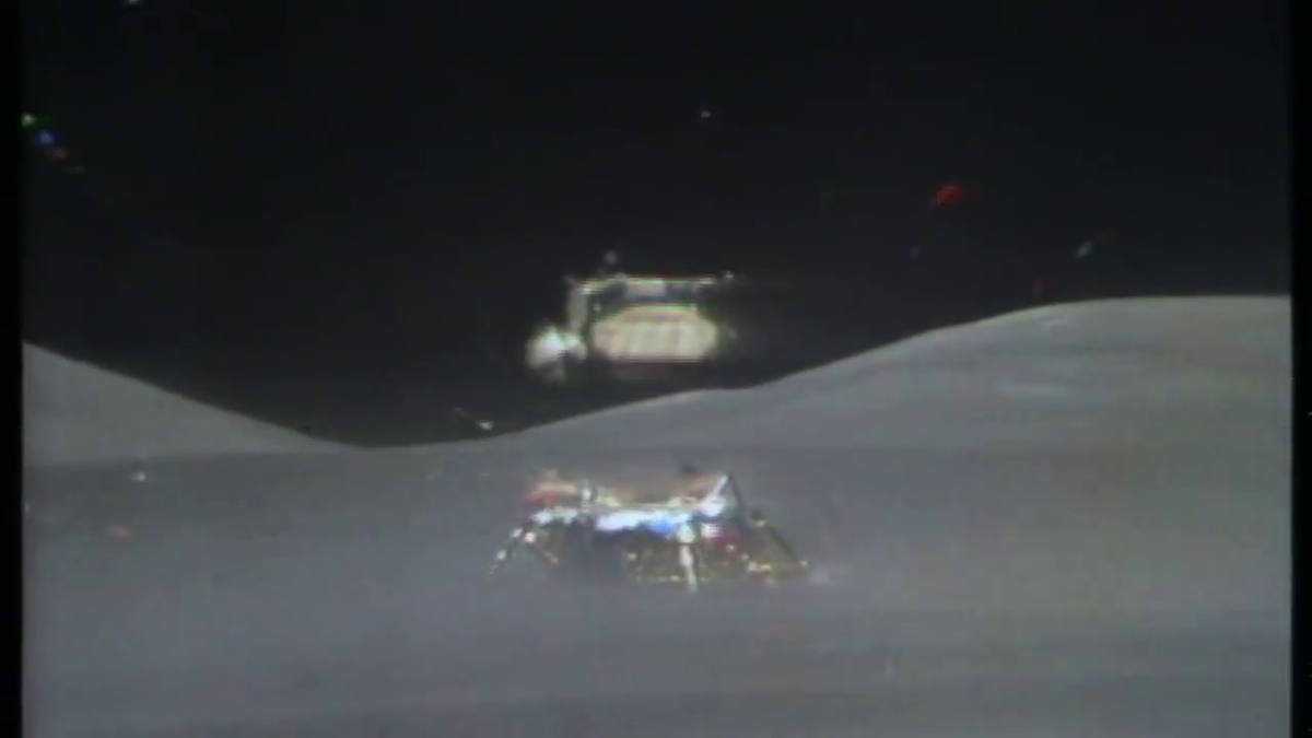 И велась трансляция "взлёта с Луны" не телекамерой RCA GCTA с частотой 10 кадров в секунду, а производилась съёмка высокоскоростной кинокамерой "Milliken" на частоте 200 кадров в секунду в павильоне, задолго до премьеры. Когда макет начал падать, кинооператор не смог так быстро среагировать на начало движения (есть определенное время реакции оператора), поэтому макет уже начал удаляться и только потом оператор поспел за ним. Конечно, он старался и репетировал начинать наклонять камеру точно со звуком хлопушки (петарды), но из-за высокой скорости съёмки эта задержка в режиме "слоу-моушен" стала заметна.