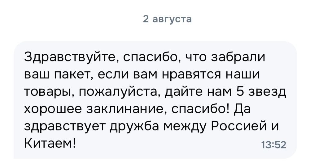 Не успела я вам вчера рассказать про цветочки и милое сообщение от китайского продавца, как получила ещё одно – милее первого 🤭