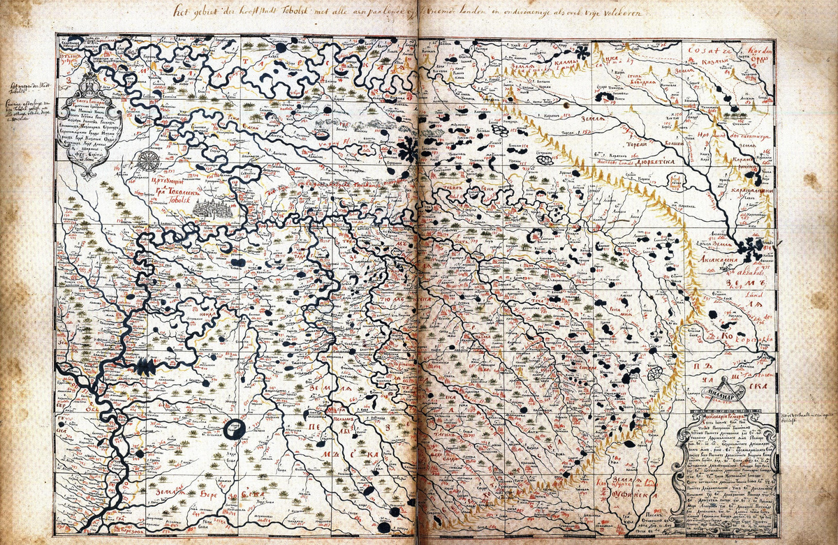 Фрагмент карты Семёна Ульяновича Ремезова, 1701 год; север — слева.