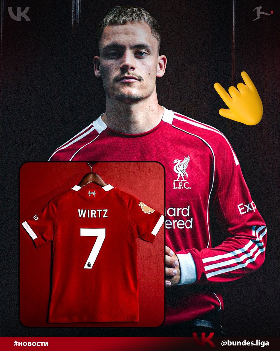 Вирц будет играть под 7 номером ⚽ «Ливерпуль» объявил, что немецкая звезда Флориан Вирц будет выступать с номером 7 в предстоящем сезоне. ⚡ Вирц, который в предсезонке выступал под номером 58, теперь будет носить номер Луиса Диаса, который недавно перешёл в мюнхенскую «Баварию». Футболку с номером 7 ранее носили такие легенды «Ливерпуля», как Кенни Далглиш, Иан Каллаган, Кевин Киган и Луис Суарес.