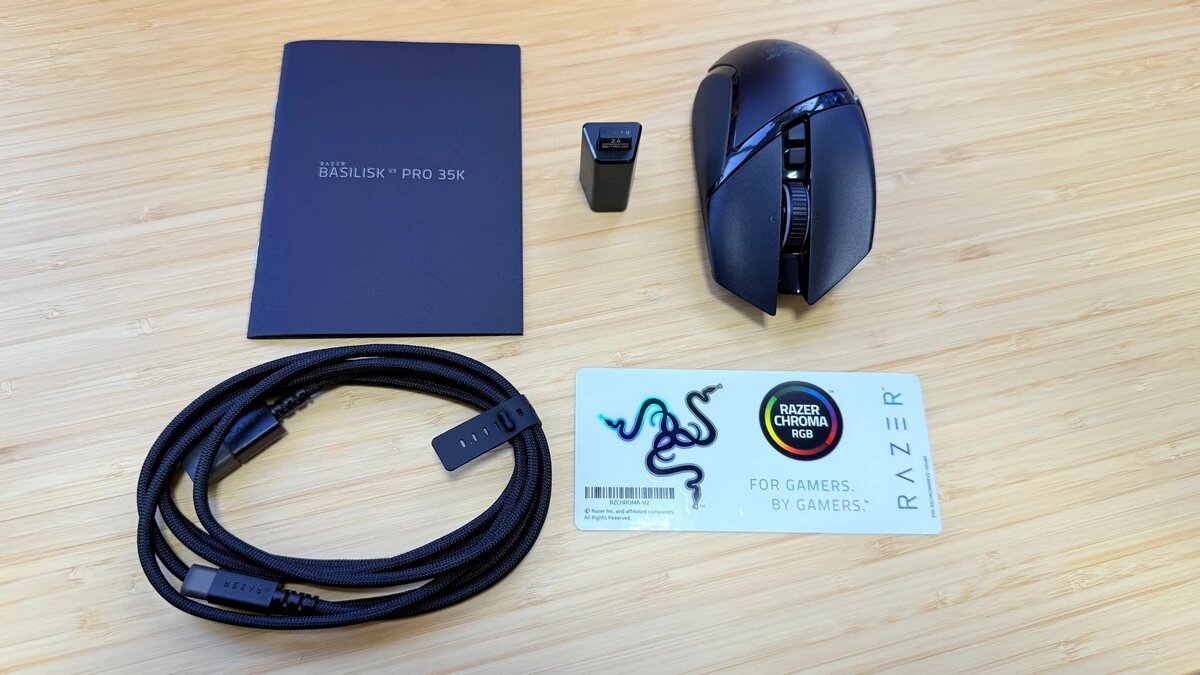 Сам корпус выполнен на отлично: ни люфтов, ни поскрипываний. Всё, как положено устройству премиум-класса. И даже комплект (без лишнего): сама мышь, провод, донгл, переходник, инструкции и наклейки — скромно, но со вкусом. Единственное, чего не хватает — Razer Mouse Dock Pro, зарядной станции, которую придется докупать отдельно если вы хотите у себя на столе прям красоту-красоту.