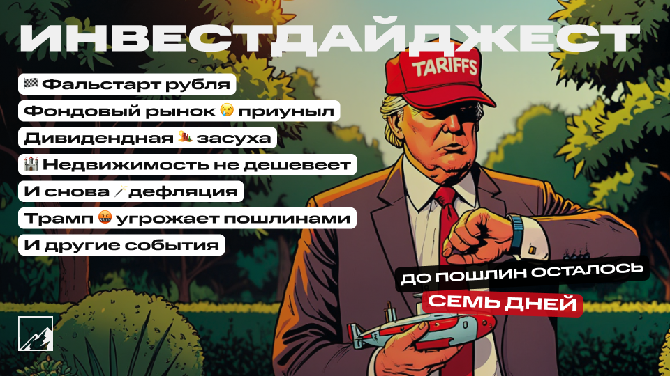 Нервная неделька выдалась для рубля, да и для акций тоже. Лишь облигации планомерно продолжают расти. Трамп пока не знает, повлияют ли как-то пошлины для России и её торговых партнёров или нет. А я вообще не знаю, введёт ли он пошлины. Зато я знаю, что ваш любимый волшебный дайджест готов к прочтению. Не теряйте же время, читайте!