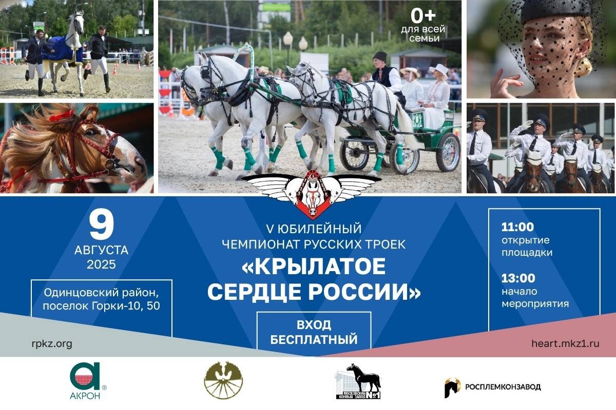 🆓 Чемпионат русских троек «Крылатое сердце России» 🗓️9 августа 📍Московский конный завод №1, Московская область, Одинцовский район, пос. Горки-10, стр. 50. Ориентир – большой Манеж МКЗ №1 и памятник жеребцу Квадрату у входа. Программа: 11:00 – открытие площадки для публики 11:00 – 16:00 – ярмарка сувениров, народных промыслов и фермерской продукции, мастер-классы и показательная ковка. Для самых маленьких гостей – катание на пони и хоббихорсинг 13:00 – открытие турнира 13:00 - комбинированный паркур русских троек «Дороги славной истории» 14:30 – выступление Марии Красновой «Танго» с орловскими кобылами на свободе. Выступление Центра Конного Наследия «Легенда» с номером «Зорро» с участием терских лошадей 15:00 – награждение победителей. 15:30 – выступление Казачьего хора Ансамбля песни и пляски «Красная звезда» Ракетных войск стратегического назначения Дресс-код для гостей – летний усадебный. Дамы – в шляпках 🆓Бесплатно @Together_with_kids Пост носит информационный характер
