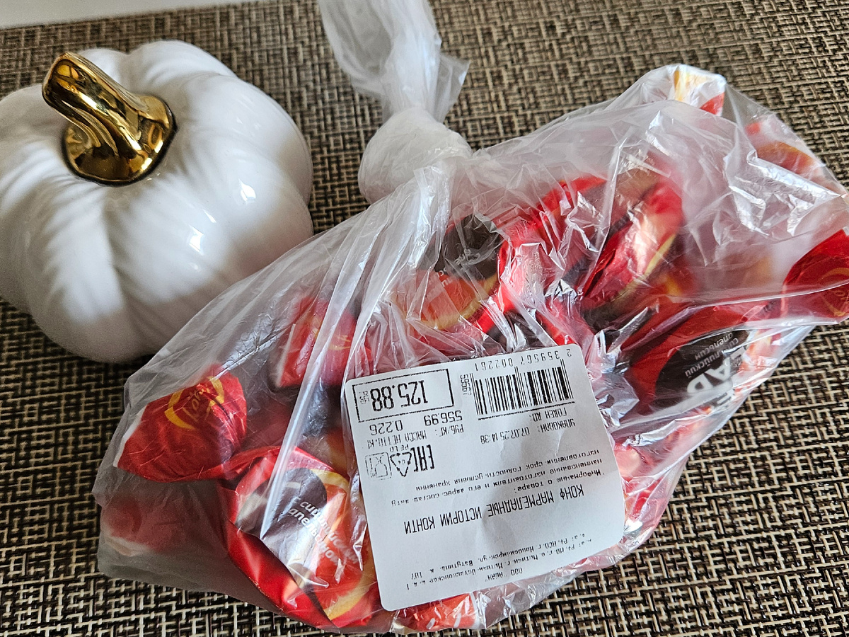 Купила в Ашане конфеты и чуть не съела все одна. Опозорились на кассе самообслуживания, аж стыдно стало.