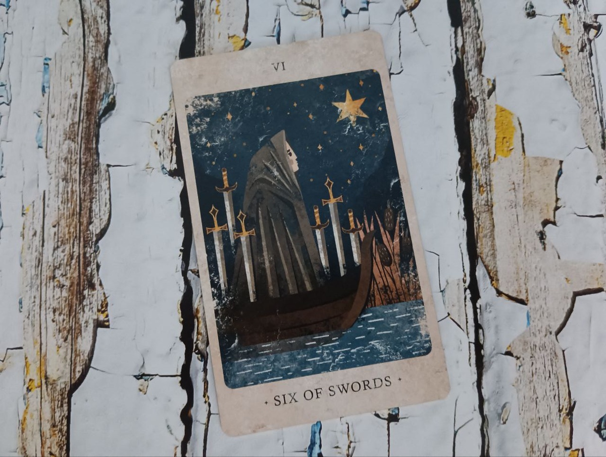 6 мечей — стремление к новому, когда есть потребность что-то узнать или что-то рассказать, поделиться. Понимание, что ты хочешь свежего опыта, головой. Зачастую — поездка с энтузиазмом, с радостным ожиданием новых горизонтов.