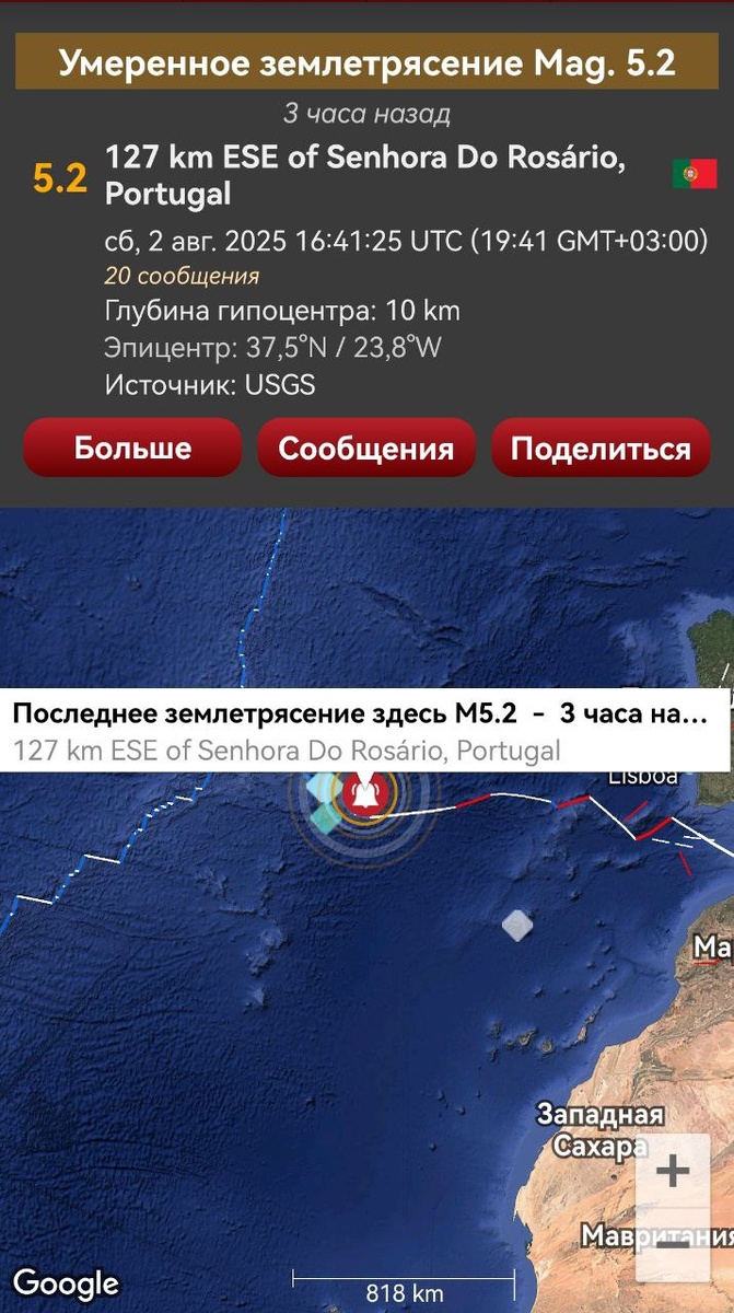 После данной пятерки стоит напрячься Еврозоне. В течение 1-2 недель сюда может прилететь +0.5-1 магнитуда от Азорского. Италия, Греция, западная Турция - куда-то сюда, например. Т.е. М5.7-6.2 примерно.