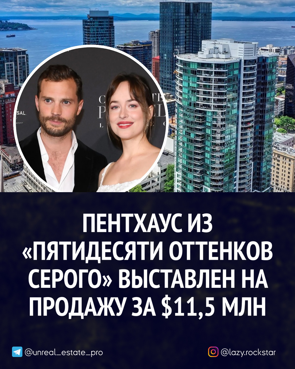 Именно здесь висели те самые рубашки, развешанные по миллиметру. Здесь же — стол, за которым Анастейша подписывала контракт. Несколько сцен из фильма сняты прямо в этом пентхаусе. Сейчас его можно купить. Роскошный пентхаус в Сиэтле, который стал узнаваемым после «Пятидесяти оттенков серого», выставлен на продажу за $11,5 млн. Это тот самый апартамент в башне Escala, который в фильме назывался “домом” Кристиана Грея — персонажа с контрол-фриком внутри и винной комнатой снаружи. Верхний этаж, панорамные виды, частный лифт, камин, винная, гардероб, терраса, умный дом — весь набор. Что‑то снимали в павильоне, но планировка, дух и ощущение — настоящие. Агентам и застройщикам — в своем Telegram выкладываю всё, что действительно работает сегодня.