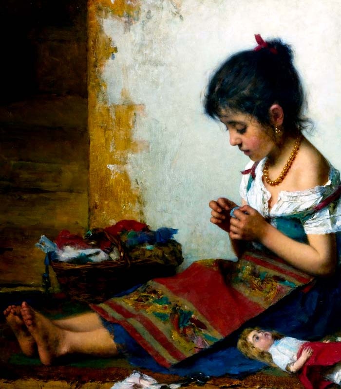 Посмотрите на «Маленькую швею» — ее сосредоточенный взгляд, легкий румянец, сама атмосфера тихого труда... Его работы в Европе способствовали утверждению престижа русской живописи, а Тургенев, чей портрет он написал, верил в его славное будущее. А теперь обратите внимание на его «Подруг». В детских портретах отсутствует приторная мелодраматичность, часто присущая академическим произведениям. Здесь нет ни пафоса, ни болезненной напряженности. Тонко выстроенное цветовое решение и легкие, полупрозрачные мазки придают полотну необычную текстуру. Вот она — неповторимая теплота Харламова! Его называли прекрасным колористом: свет в его работах льется, обволакивая героев нежностью. Дети, их искренние эмоции, моменты тихого счастья — это был его мир. Все это особенно четко передается благодаря высококачественной печати репродукций. Но затем наступ