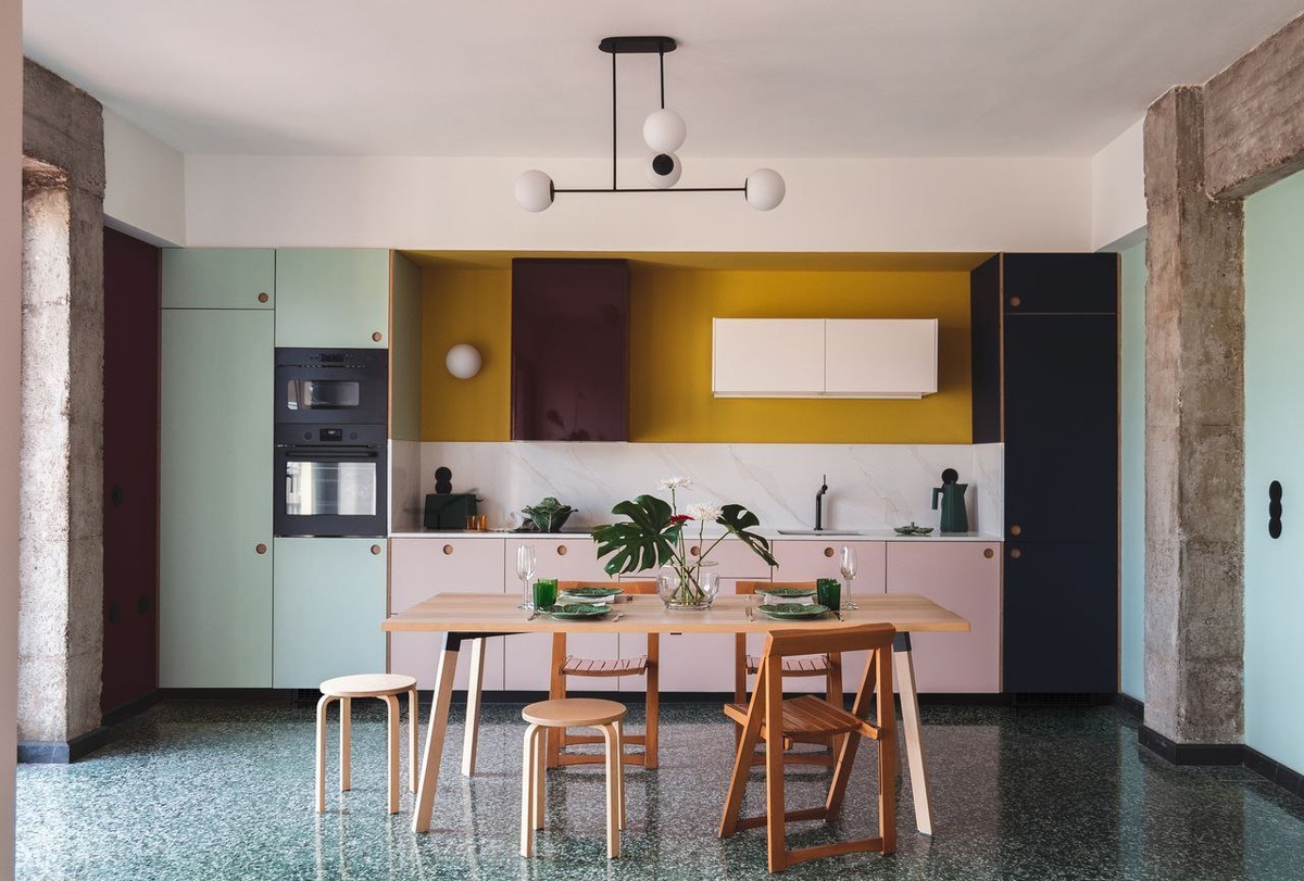 Ковры и освещение создают визуальные опорные точки: подвесной светильник над обеденным столом или ковер под диваном создают островки в