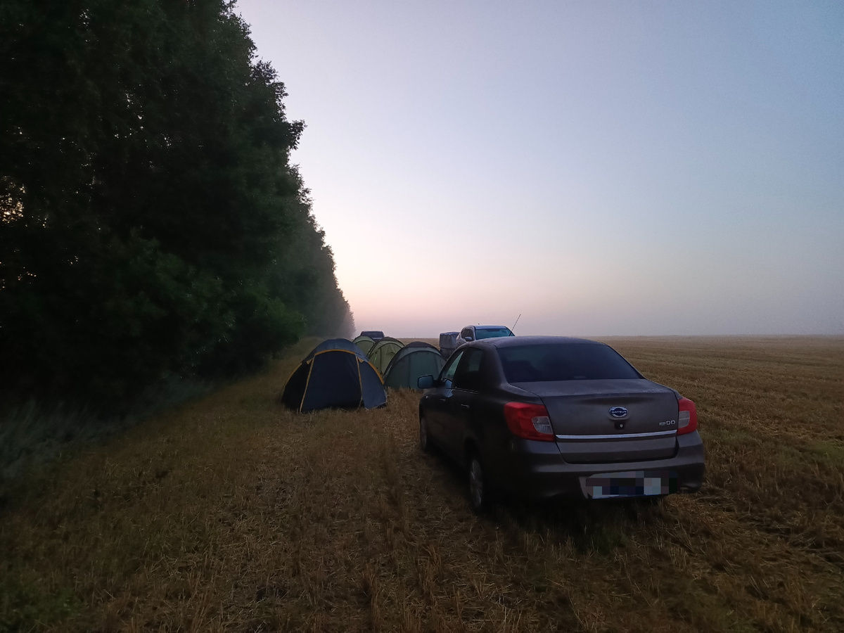 Итак, ночь выдалась туманная. Утром всё ещё висел туман. Я ужасно замёрзла и была рада солнышку - оно мгновенно прогревает палатки. А дальше было уже жарко. Интересно, что в лесополосе прям прохладно, а в поле - жара. Мальчишки набесились на поле вдоволь пока готовился завтрак и собирались палатки. Мимо нас через поле прошли комбайны и трактора - им ещё много хлеба убирать. А мы поехали дальше. Завернули опять на родник. Набрали воды и помыли ноги, а то после местных черноземов мы как поросята грязные были ))) А ещё мы спасли мотылька, случайно упавшего в воду. Вода из родника впадает в небольшую речку. Вода в ней ледяная - ноги сводит. Но на жаре это даже прикольно ))) А потом помчали в Уфу. Хотели показать семье брата памятник Салавату, но он оказался закрыт на реставрацию. И увидеть его сейчас можно только так: В общем, мы обошли его кругом по дорожке. С этой дорожки и памятника-то не видно. Да и река прячется за деревьями и кустами. Фонтан тоже на реставрации, поэтому мальчишки на