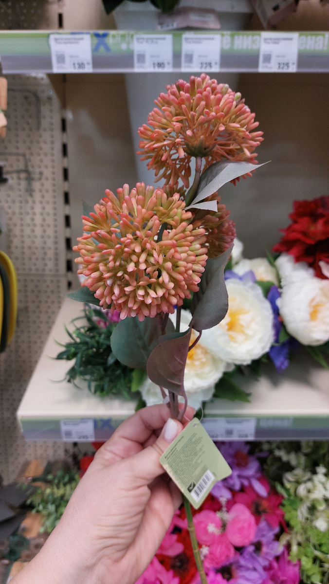 Декоративная ветка называется "Катерин", длина 42 см, внизу стебель зеленый. Цена 225 рублей. Три цвета продается (покажу на фото с разных ракурсов), можно поставить в напольную вазу, красиво будут смотреться все вместе.