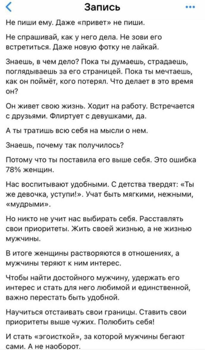 Но вот вы знаете на какой мысли я себя поймал, читая это всё? Скоро будет 5-лет, как я консультирую мужчин. И вот знаете, что самое интересное? Практически все эти ребята, которые приходили ко мне на разговор, состоят или состояли в отношениях как раз с такими вот девчонками, которые всем сердцем и душой «любили и выбирали только себя».